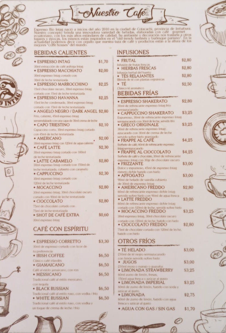 Café Río Intag prides itself on its artisanal coffee creations. Sourced from local beans, each cup promises a rich, aromatic experience that will awaken your senses. Whether you’re in the mood for a simple yet satisfying espresso or fancy something more adventurous, like their enticing ciffeeand despertar, you’re sure to find something that captures your taste buds. Compliment your drink with one of their delicious desserts, perfect for indulging in a sweet moment of bliss. As customer Helga Dénes notes, this café stands out particularly on warm days where their iced lattes become a refreshing treat.